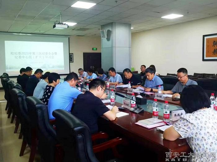 (本网讯)7月7日,校纪委召开2023年第三次全体委员会议暨理论学习中心组(扩大)学习会,集体学习习近平总书记在听取省委和省政府工作汇报时的重要讲话精神,传达学习省纪委监委纪检监察干部教育整顿警示教育大会精神,研究贯彻落实举措。会议由校党委副书记、纪委书记、监察专员王发合主持。