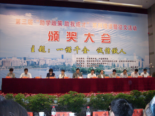 (本网讯)5月28日,由中国青年报、中国教师报主办,财政部教科文司、教育部新闻办、全国学生资助管理中心为指导单位的第三届“助学政策 助我成才”征文活动颁奖仪式在湖北黄石举行。教育部副部长郝平、共青团中央书记处书记卢雍政出席颁奖仪式并讲话。必赢bwin线路检测中心作为特邀代表参加此次活动。