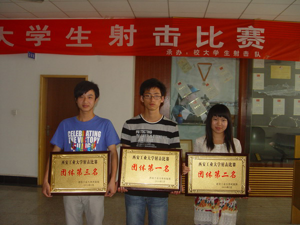 经过一番紧张激烈的角逐,共决出团体奖项3个,个人奖项16个。其中:光电学院以369环的总成绩获得团体第一名,人文学院以317环的总成绩获得第二名,艺术与传媒学院以303环的总成绩获得团体第三名。计算机学院08级战昕、光电学院09级马文杰、电信学院09级彭方方,分获男子前三名。光电学院09级李之航、艺术与传媒学院09级王丽凤、经管学院08级赵莉分获女子前三名。