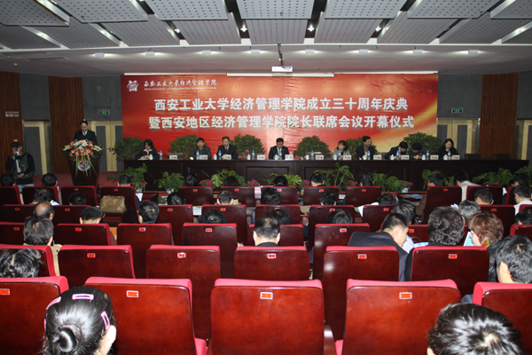 校党委书记赛云秀发表了热情洋溢的讲话。他首先代表学校向经管学院全体师生员工致以亲切的问候和热烈的祝贺。他简要介绍了西安工大的发展历程、取得的成绩和今后的发展方向后,又介绍了经管学院的发展情况,他说:经管学院诞生在我国改革开放之初,与改革开放事业同步发展。三十年来,经管学院始终坚持学校“精工博艺、忠诚进取”的办学传统,积极进取,开拓创新,在学科建设和人才培养方面成绩斐然。站在新的历史起点上,学院要充分利用现有的优势和基础,精心组织和谋划,争取今后有更大的作为。他对经管学院未来的发展提出了三点希望:一是以学科建设为龙头,突出人才培养这个重点。二是借助军工优势,深挖内涵,凸显特色。三是面向西北,发挥教育资源优势和学科优势,全面提升科研水平和社会服务能力。