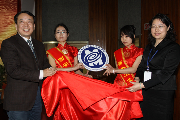 庆典仪式上还举行了经管学院院徽揭幕仪式。当张君安副校长与李纯青院长共同揭下院徽幕布的那一刻,全场掌声雷动。