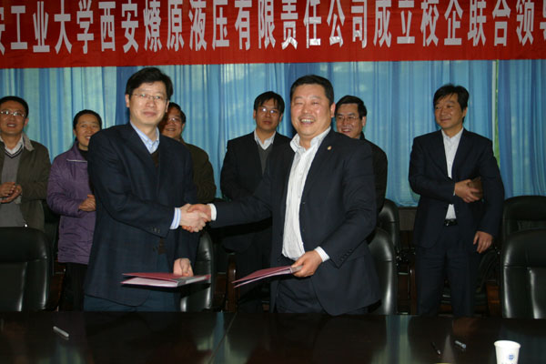 3月24日,在金花校区举行了必赢bwin线路检测中心与西安燎原液压有限责任公司校企合作协议领导小组和设立燎原液压奖学金的签署仪式。西安工大副校长刘卫国教授、校长助理陈桦教授、西安燎原液压有限责任公司李杰董事长、费加平副总经理出席签约仪式。学校科技处、人事处、校办、机电工程学院负责人以及相关人员参加了仪式。