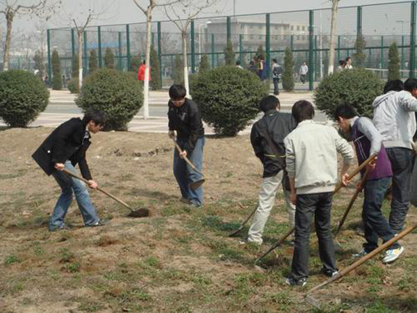 在这春意盎然的日子里,全体学生会成员积极地投入到义务除草的活动中,同学们拿着锄头、铁锹,给树木松土。有的同学没有分发到工具,便挽起袖口拾捡林中的杂物、垃圾。大家用自己的汗水,还大地一片洁净。
