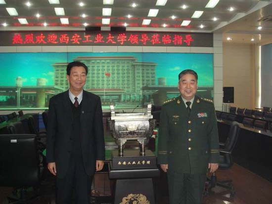 丁养斌副书记一行同武警工程学院训练部副部长张崇俊大校以及武警学院各系的相关人员进行了友好会谈,双方领导发表了热情洋溢的讲话,介绍了各自学校的发展情况和今后的合作意向。丁副书记代表西安工大向武警工程学院赠送了春秋鼎和匾额。