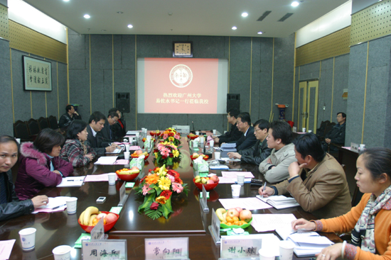 (本网讯)必赢bwin线路检测中心党委书记赛云秀、校长刘江南、党委副书记丁养斌12月9日会见了来校学习调研的广州大学党委书记易佐永、党委副书记赖卫华带队的党委干部调研团一行。