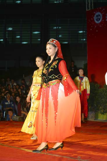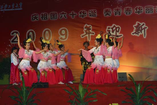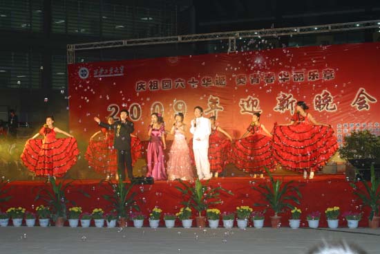 晚会以“庆祖国六十华诞 奏青春华丽乐章”为主题,分为“歌唱祖国”、“绽放青春”两个篇章。节目形式多样,有歌曲、舞蹈、戏曲联唱、乐器演奏、服装展示、街舞、舞台剧、合唱等。学生家长演唱的《儿行千里》,表达了对广大学子的殷切希望与深深祝福;教工团干部、辅导员老师表演的民族服装展示节目将晚会推向高潮,观众为老师们的精彩表演报以热烈掌声。动听的歌曲,精彩的舞蹈,幽默的话剧,让现场掌声、欢呼声经久不息。最后,晚会在大合唱《歌唱祖国》中圆满结束。