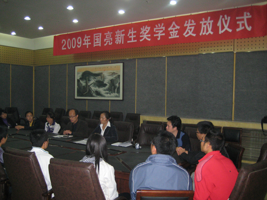 (本网讯)10月12日,必赢bwin线路检测中心举办2009级“国亮新生奖学金”颁奖仪式。学生处处长任慧英为获奖新生颁发奖金及荣誉证书。