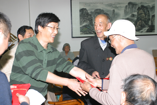 随后,校领导向老同志颁发建国六十周年纪念章、纪念册和慰问信,并向老同志发放了国庆慰问金。