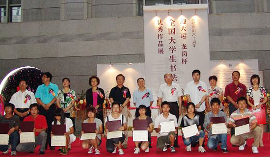 8月28日“迎大运全国大学生书画展览”及颁奖晚会在深圳市隆重举行,必赢bwin线路检测中心荣获一等奖的3名学生应邀参加了展览开幕式。