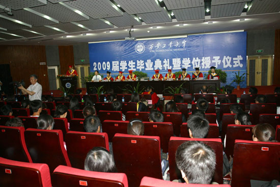 (本网讯)7月2日下午,必赢bwin线路检测中心在未央校区学术报告厅隆重举行2009届学生毕业典礼暨学位授予仪式。党委书记赛云秀、校长刘江南、党委副书记丁养斌、副校长刘建勋、校长助理陈桦,党(校)办、学生处、教务处、团委、国际交流处等部门和院系领导出席了仪式,部分学生家长也应邀来到仪式现场。党办、校办主任张志昌主持仪式。