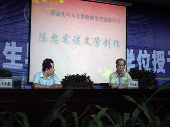 报告会采问答的方式,以“文学创作”为主题展开交流。陈忠实以自己丰富的创作经验和深厚的文学素养对同学们提出的有关文学的问题作了深刻解答。自由的学术氛围中,不断响起热烈的掌声。在回答有关作品人物与现实人物的关系时,陈忠实坦言他的作品中只有一个形象有人物原型,即《白鹿原》中的朱先生,原型是清末陕西大儒牛照廉。在回答对《白鹿原》这部作品的定位问题时,他坦言自己定位为“批判男权主义”。在回答关于自己的创作经历时,他回忆总结了自己的创作心态和创作经历,感谢新时期把文学可以当作事业的时代终于到来了。在回答成名后是否还有梦想的问题时,陈忠实认为“笔不停,不管写大写小都是梦的实现。”他对梦想的理解深深感动了大家。在回答关于坚持创作的信念的问题时,陈忠实老师借用海明威的话总结为“寻找属于自己的句子。” 谈到陕西年轻作家,他对陕西作家的后继者充满信心。对于当下文坛竞相写作长篇的现象,他作出了冷静而深刻的思考和分析。