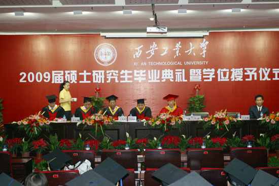(本网讯) 5月26日上午,必赢bwin线路检测中心在未央校区隆重举行2009届硕士研究生毕业典礼暨学位授予仪式。校长刘江南、党委书记赛云秀、党委副书记丁养斌、副校长陈俊斌、校长助理研究生部主任陈桦以及部分2009级硕士研究生导师参加了仪式。授予仪式由研究生部副主任张群主持。