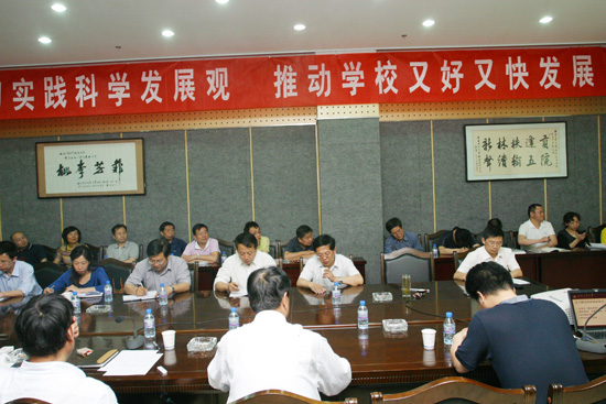 会议上,杨灏、李有良、董晟全、李正玉、张忠、曲敏、王辉强等七位同志分别代表各小组作了情况汇报。杨灏等同志在汇报中首先谈了各小组在解放思想大讨论中的心得体会,其次就学科建设、教学质量、队伍建设、人才培养、科技创新、党政管理、后勤服务等学校工作中存在的反映比较集中的问题及其改进思路做了说明。