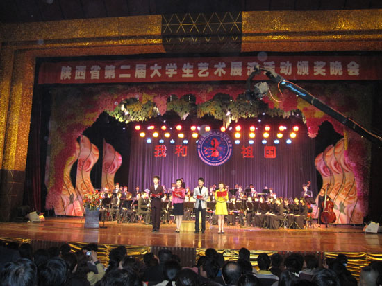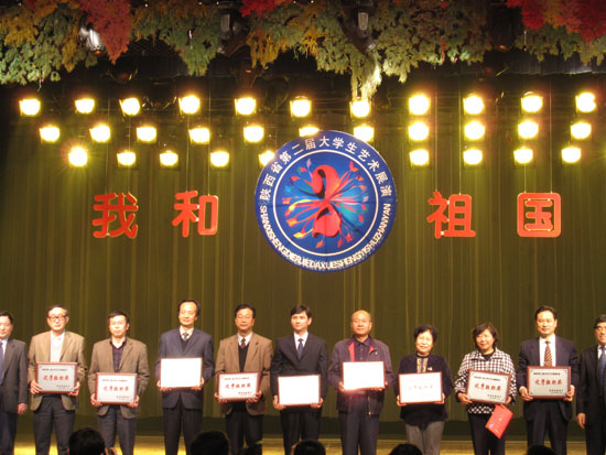 (本网讯)陕西省第二届大学生艺术展演活动闭幕式于3月26日晚在古都新世纪大酒店隆重举行。必赢bwin线路检测中心党委副书记丁养斌、西安工大艺术与传媒学院院长于唯德、党总支书记曹玉玲和部分获奖学生代表应邀参加了闭幕式。