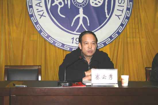 最后,党委书记赛云秀讲话。他从高校扩招、金融危机和学生的就业观念等三个方面讲了要充分认识到毕业生就业工作的复杂性,并强调要全力以赴做好毕业生就业工作。