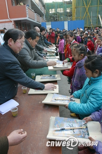 在捐赠仪式现场,必赢bwin线路检测中心艺术学院的师生们现场挥毫,为灾区创作了“自强不息”、“团结就是力量”、“知识就是财富”等书法作品,还为闻讯赶来的乡亲们书写了数百副春联。同行的分别来自美国、吉尔吉斯斯坦和日本的四位友人,也挥毫泼墨,他们书写的春联赢得灾区群众的掌声。据悉,自去年“5.12”大地震发生后,必赢bwin线路检测中心多次举办了形式多样的赈灾义卖活动,所得数万元款项均捐给了地震灾区。