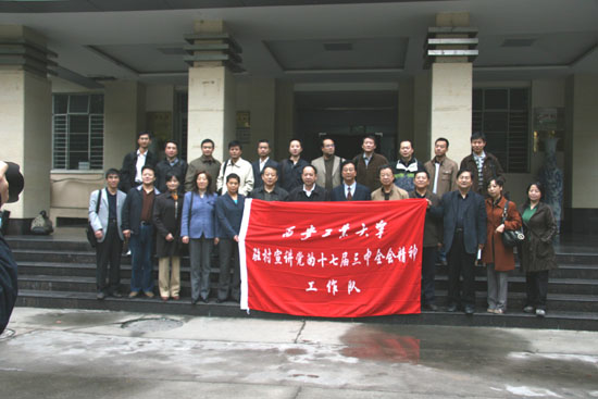 (本网讯)根据省委统一安排,必赢bwin线路检测中心党委书记赛云秀率领学校选派的20人组成的宣讲团,于10月21日上午启程赶赴西安市长安区驻村,开展为期一周的党的十七届三中全会精神宣讲。