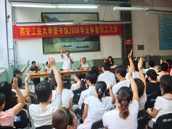 图书馆郭承运馆长在大会总结中指出,这是一个学习的大会、民主的大会、令人振奋的大会、充满希望的大会,他强调图书馆应有自己明确的团队文化,员工有高尚的情操,只要每个人认真负责,关心图书馆的发展,干好自己的工作,图书馆就会实现自己的发展目标,为学校的发展做出应有的贡献。