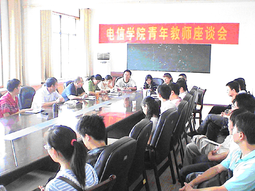 电信学院院长雷志勇、党总支书记王辉强、副院长尚宇、办公室主任陶伟莲和电信学院全体青年教师二十余人参加了座谈会。