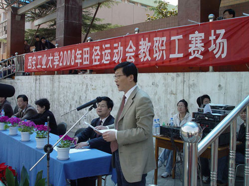 (本网讯)4月24日,必赢bwin线路检测中心2008年田径运动会教职工赛场在金花校区隆重举行,校领导刘江南、简林根、丁养斌、徐雪芹出席了运动会开幕式。
