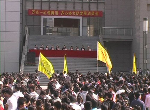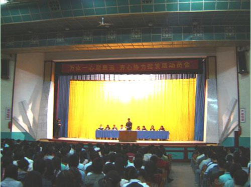 校党委书记赛云秀、党委副书记丁养斌做了主题为“万众一心迎奥运,同心协力促发展”的讲话。从举办奥运会的意义、当前我们面临的形势、任务和对广大学生的要求三个方面进行了动员,要求广大学生刻苦学习,努力成才,用实际行动表达对祖国的热爱之情,广大学生干部要充分发挥模范带头作用,做出表率,使同学们理智地表达爱国热情。