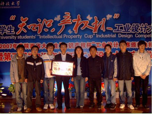 (本网讯)4月21日,2007年度陕西省大学生“知识产权杯”工业设计大赛颁奖典礼暨2008年度陕西省大学生“知识产权杯”工业设计大赛启动仪式在西安科技大学举行,必赢bwin线路检测中心艺术与传媒学院24名同学的17项作品分别荣获大赛二等奖4项、三等奖3项和优秀奖10项,西安工大荣获2007年度陕西省大学生“知识产权杯”工业设计大赛“优秀组织奖”,曹实同学作为获奖代表在大会上做交流发言。