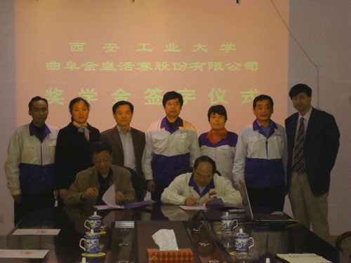 刘建勋副校长和张鲁京董事长在仪式上先后发表讲话。刘建勋副校长在讲话中代表学校向山东曲阜金皇活塞股份有限公司对本校人才培养工作的一贯支持表示衷心感谢,并转达了我校党委书记赛云秀、校长刘江南对公司领导的问候,同时希望学生发奋学习,努力成才,不辜负来自社会的无私关爱和殷切期望。张鲁京董事长在讲话中表示,金皇活塞旨在建立校企联合培养人才的机制并回馈社会,同时金皇活塞将在以后开始西安工大开放实习基地,这不仅是实践教学的平台,也是缩短人才供需信息链、加快信息交流的手段,对公司来说也是选取实用人才的好平台。基地的建立既是双方主要领导互信协商的结果,也是学校积极推动的结果。愿双方的诚意合作取得应有的互补和互惠的效果。
