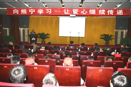 校党委副书记丁养斌参加了报告会,对志愿者们所做的工作给予了高度的肯定,号召广大团员青年积极学习熊宁的先进事迹,为共同构建和谐社会而做出自己的贡献。