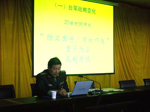李开荣教授任解放军第四军医大学军事教研室主任,长期研究亚太军事安全问题,对台湾问题有着深入的见解。3月22日,我国台湾地区领导人选举结束,这场选举引起了世界各国的关注,关于选举前期及选举后产生的各种问题及效应,以及此次大选对我国台海局势的影响,李开荣教授均作了精辟的分析。李教授运用大量图片和生动的语言,深入浅出地分析了我国台湾问题,他渊博的学识和幽默的语言,不时引起师生阵阵掌声,报告会收到了良好的效果。