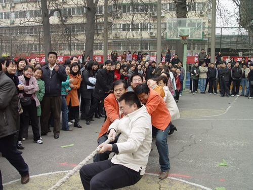 最后,女教职工进行了拔河比赛。体育系和机电学院并列获第一名,继续教育学院、研究生部工会、数理系分获二、三名。