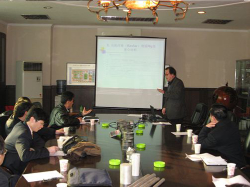 会议由武海潮局长主持。刘卫国副校长代表西安工大向与会代表致欢迎词,并简要介绍了本校在轻合金复合材料领域取得的研究成果。接着,李建平教授将其课题组多年来在铝基复合材料领域的研究开发及应用成果向与会人员做了详细的汇报。与会领导和专家对其研究成果给予了高度认可与评价,彭跃南先生对西安工大铝基复合材料技术表示出浓厚兴趣,多次提问,进行技术探讨。柴东朗教授将自己在铝基复合材料领域的成就也作了详细的汇报。