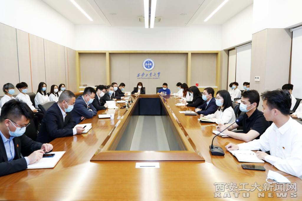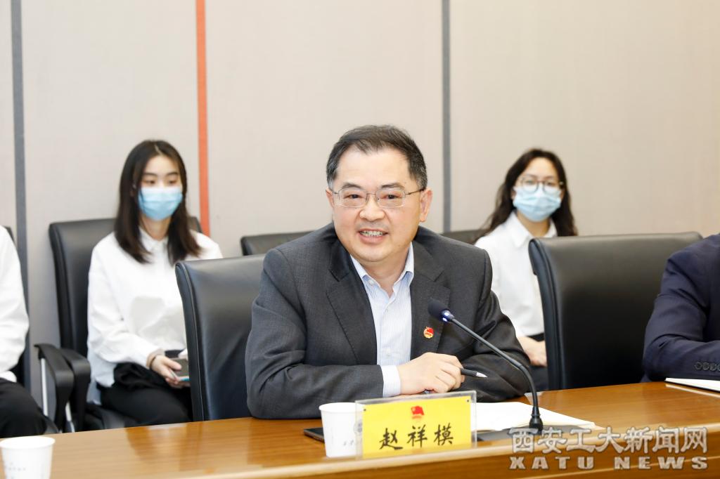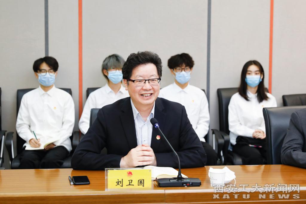 在观看完直播后,党委书记刘卫国、校长赵祥模、党委副书记梁云鹤等与师生代表进行了座谈。会上学院团委书记、学生代表结合习近平总书记讲话内容交流了心得体会。