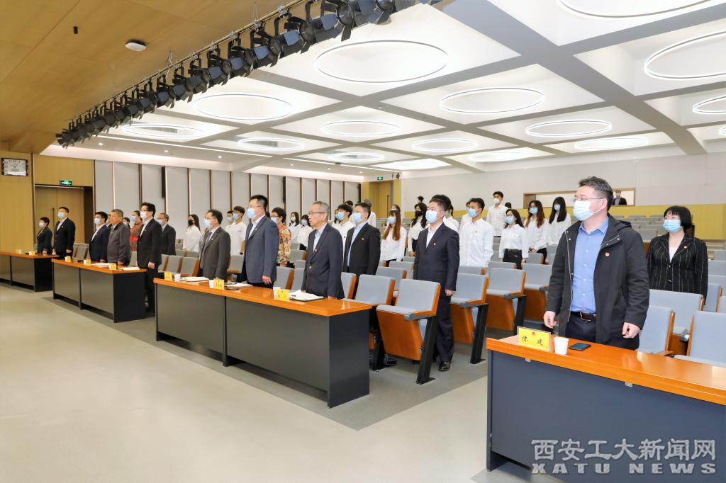 全体校领导、党委理论学习中心组成员、部分思政课教师与学生代表在图书馆报告厅共同观看了直播。
