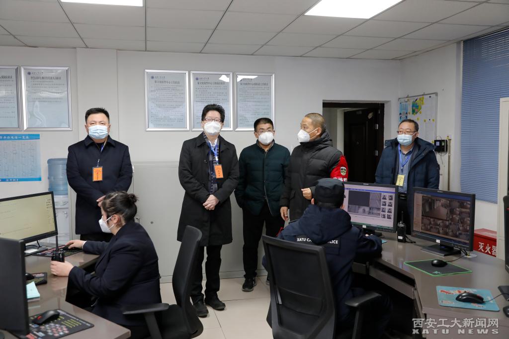 (本网讯)根据西安市疫情防控指挥部统一部署,及12月27日全省教育系统疫情防控工作视频会议精神,为切实严防疫情在校内传播,学校自12月27日起实施封闭管理。12月28日,校党委书记刘卫国、党委副书记梁云鹤、副校长祁玉龙深入一线检查指导学校疫情防控封闭管理工作落实情况。
