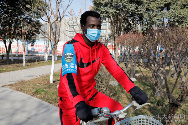 来自加纳的埃文斯说:“我每天早晨10点就会到岗,领取自己的‘安全巡逻’袖章,然后环校园检查,一旦发现不安全事件便会立刻报备,希望自己也能在假期为学校出一份力。”由于疫情,他们无法回国,选择留在中国、留在校园,一起守护这个美好的大家庭。