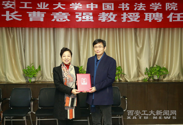 之后雷亚萍代表学校为曹意强教授颁发了中国书法学院名誉院长聘书。